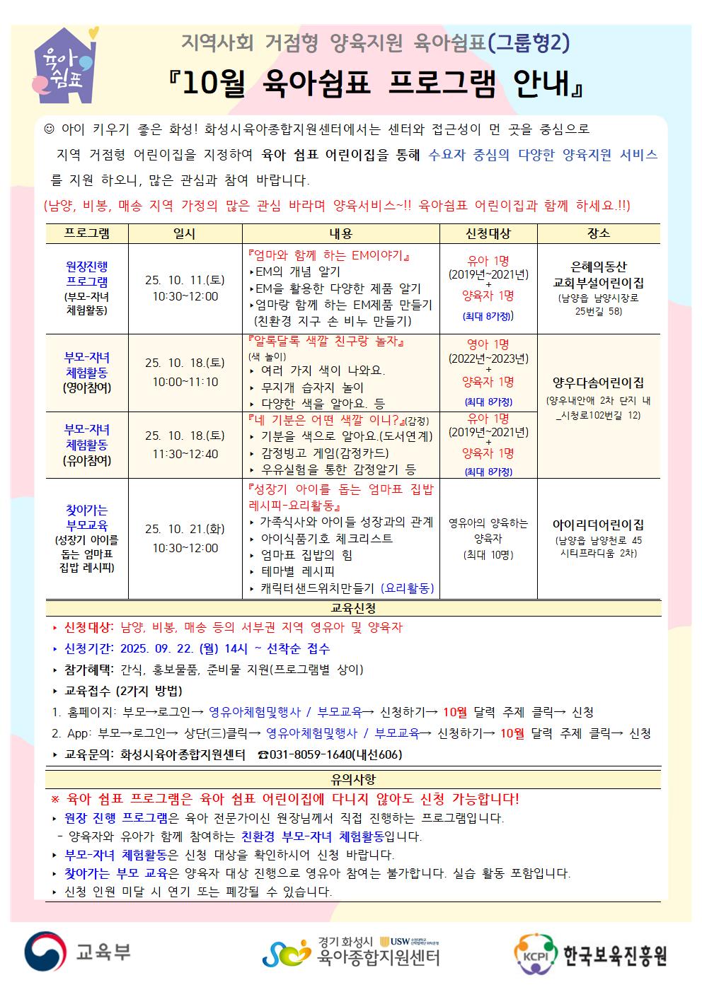장소 | 양우다솜어린이집(남양읍 시청로102번길 12 양우내안애2차 단지 내 (202동 후면 모래놀이터 인근) | ||