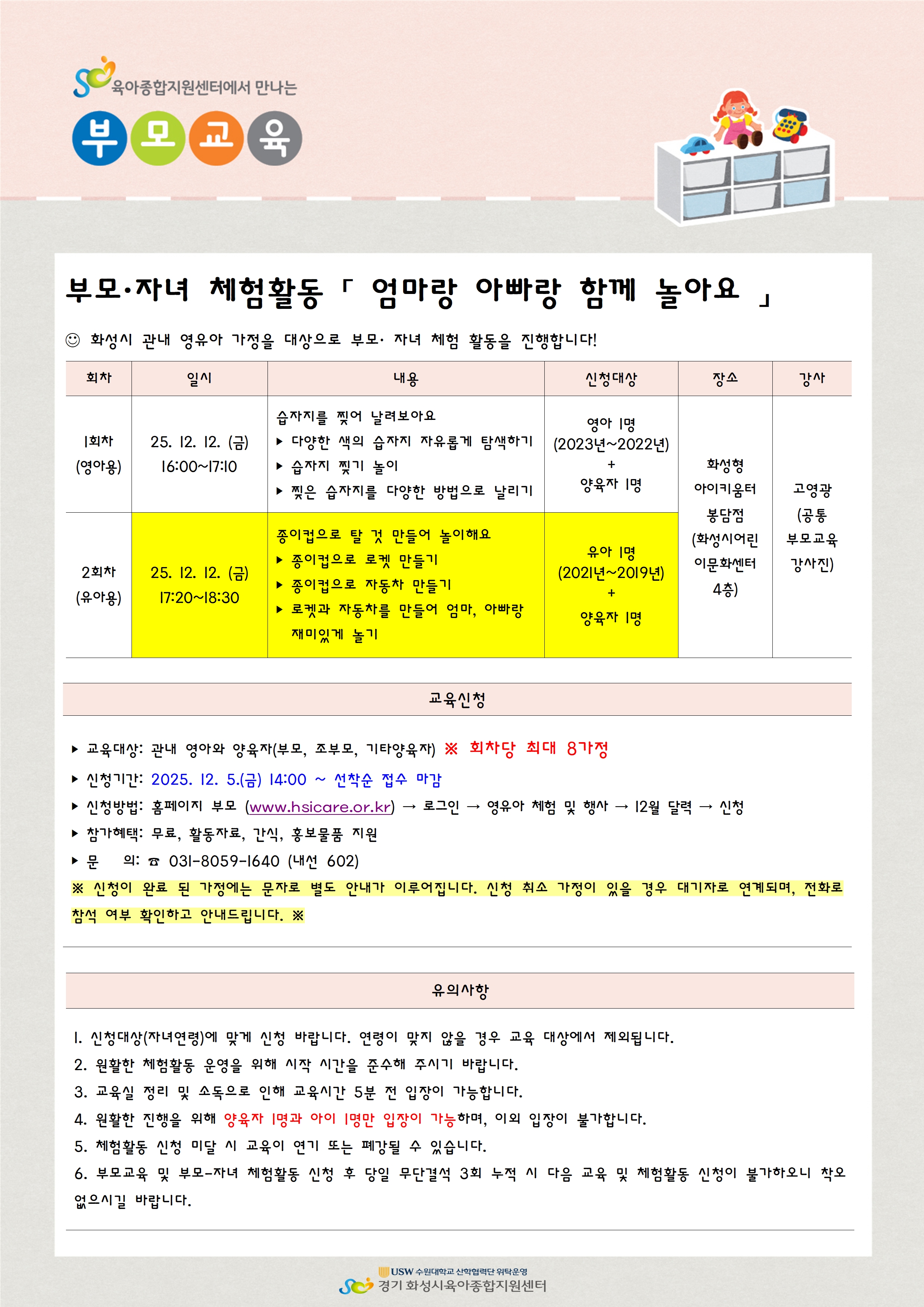 | 장소 | 화성형아이키움터 봉담점(동화길 146, 화성시어린이문화센터 4층) | ||