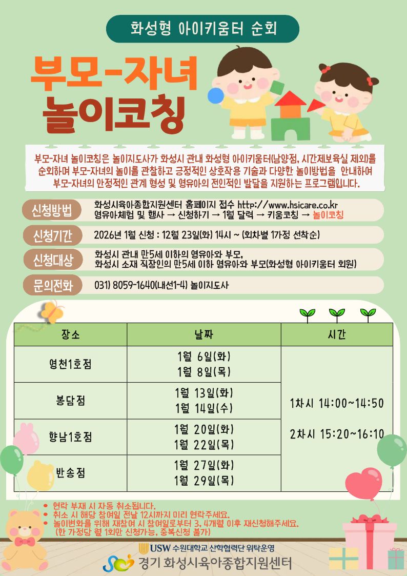 | 장소 | 화성형아이키움터 봉담점 자유놀이실 | ||