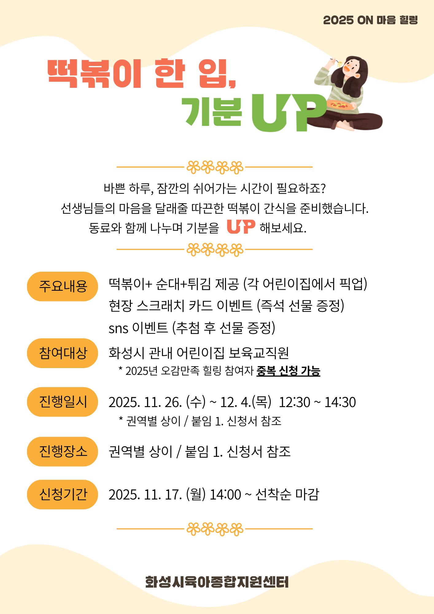 [카림애비뉴, 비봉] 2025 ON 마음 힐링 "떡볶이 한 입, 기분 UP"