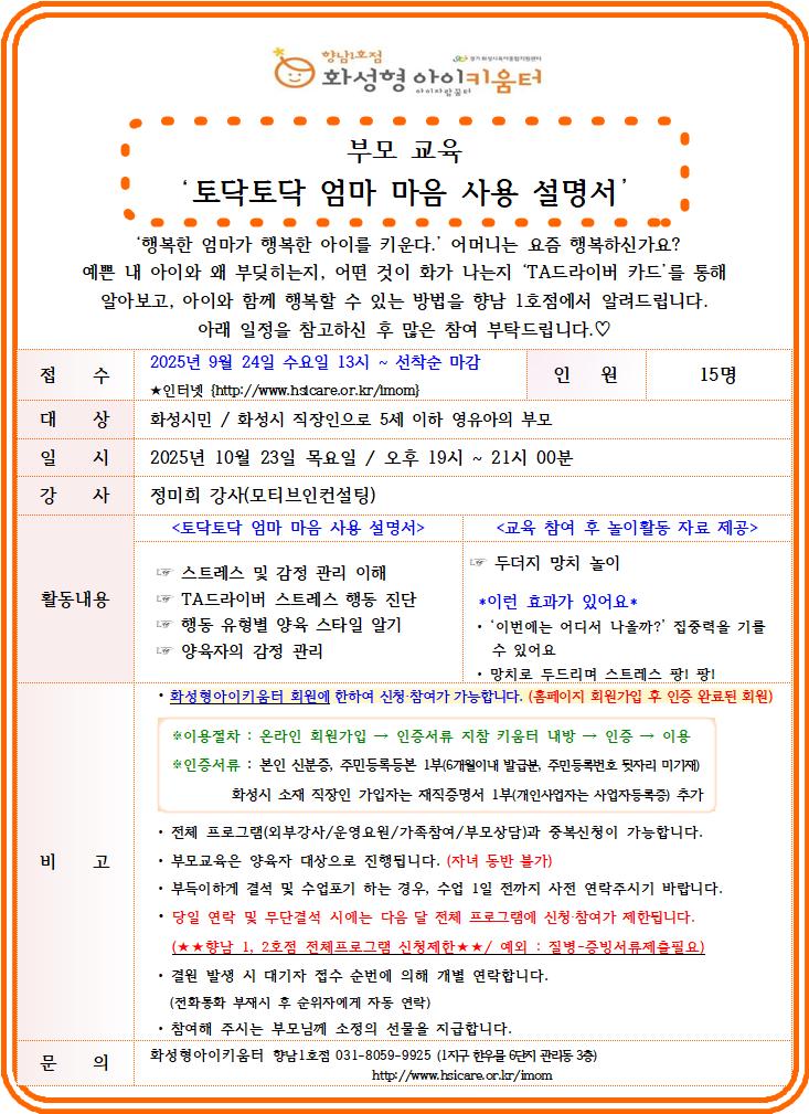 부모교육 - 토닥토닥 엄마 마음 사용 설명서