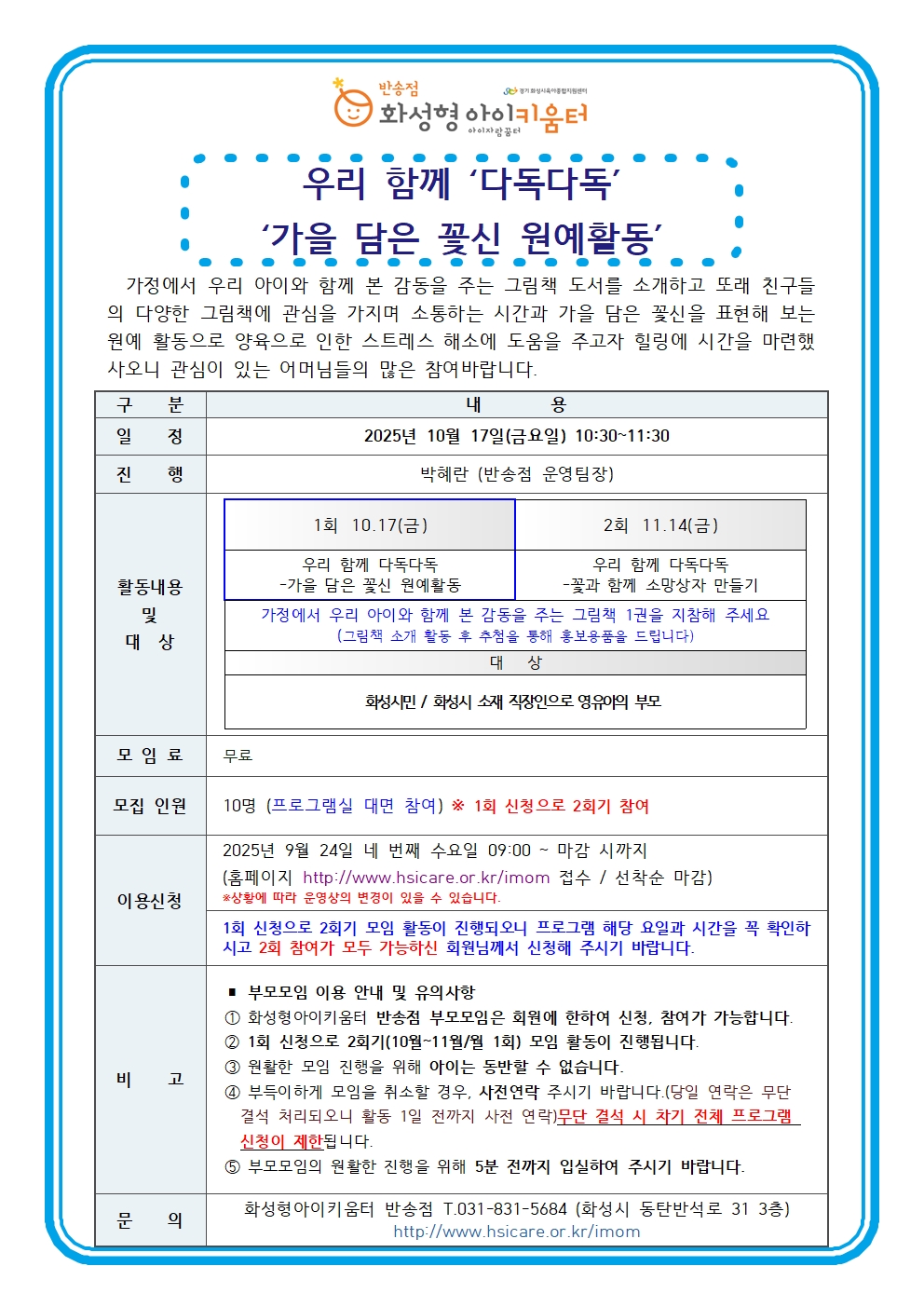 일시 2025-10-17   (1회) 10:30 ~ 11:30