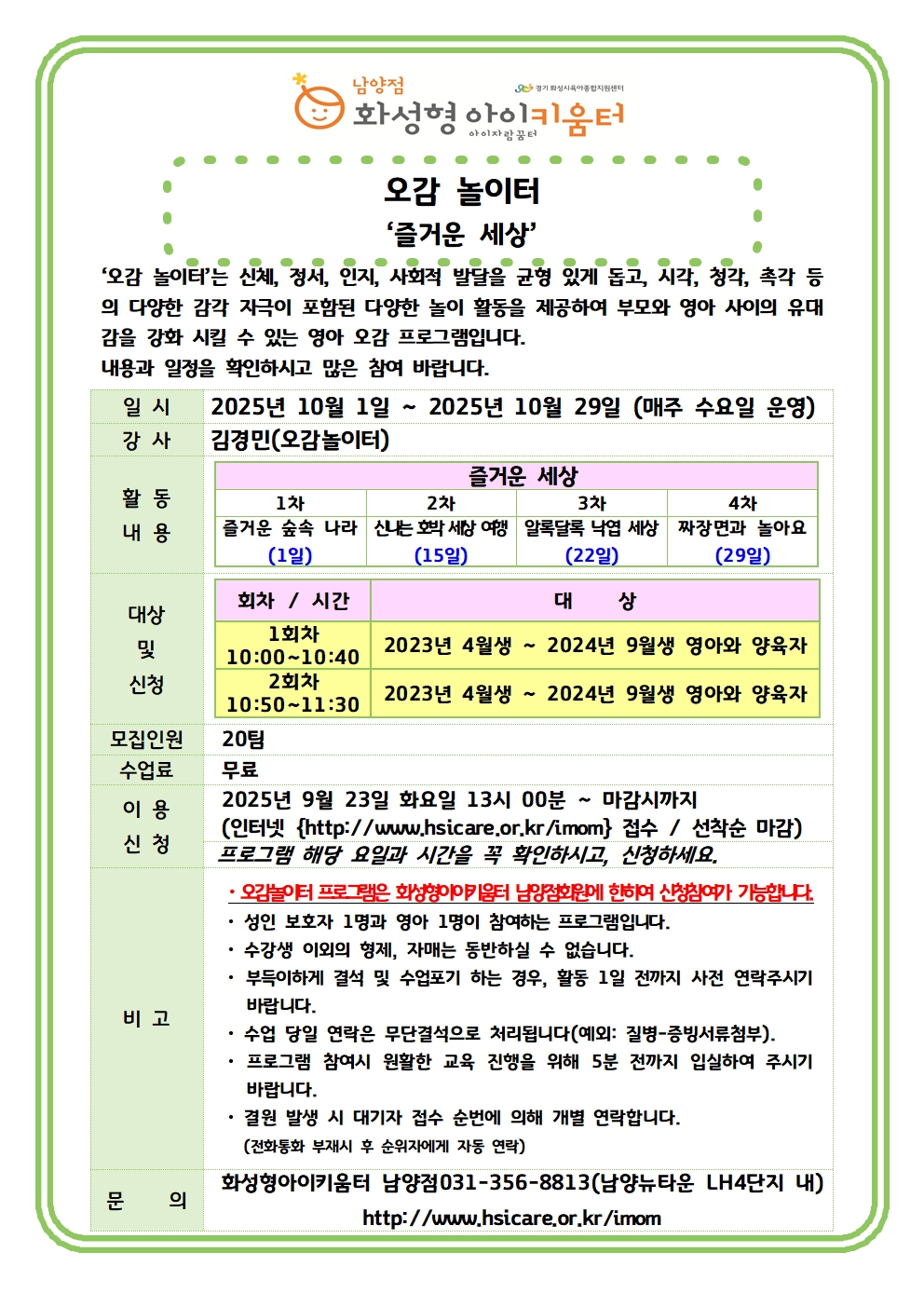 10월> 외부강사 프로그램2 '오감놀이터' - 즐거운 세상(수)
