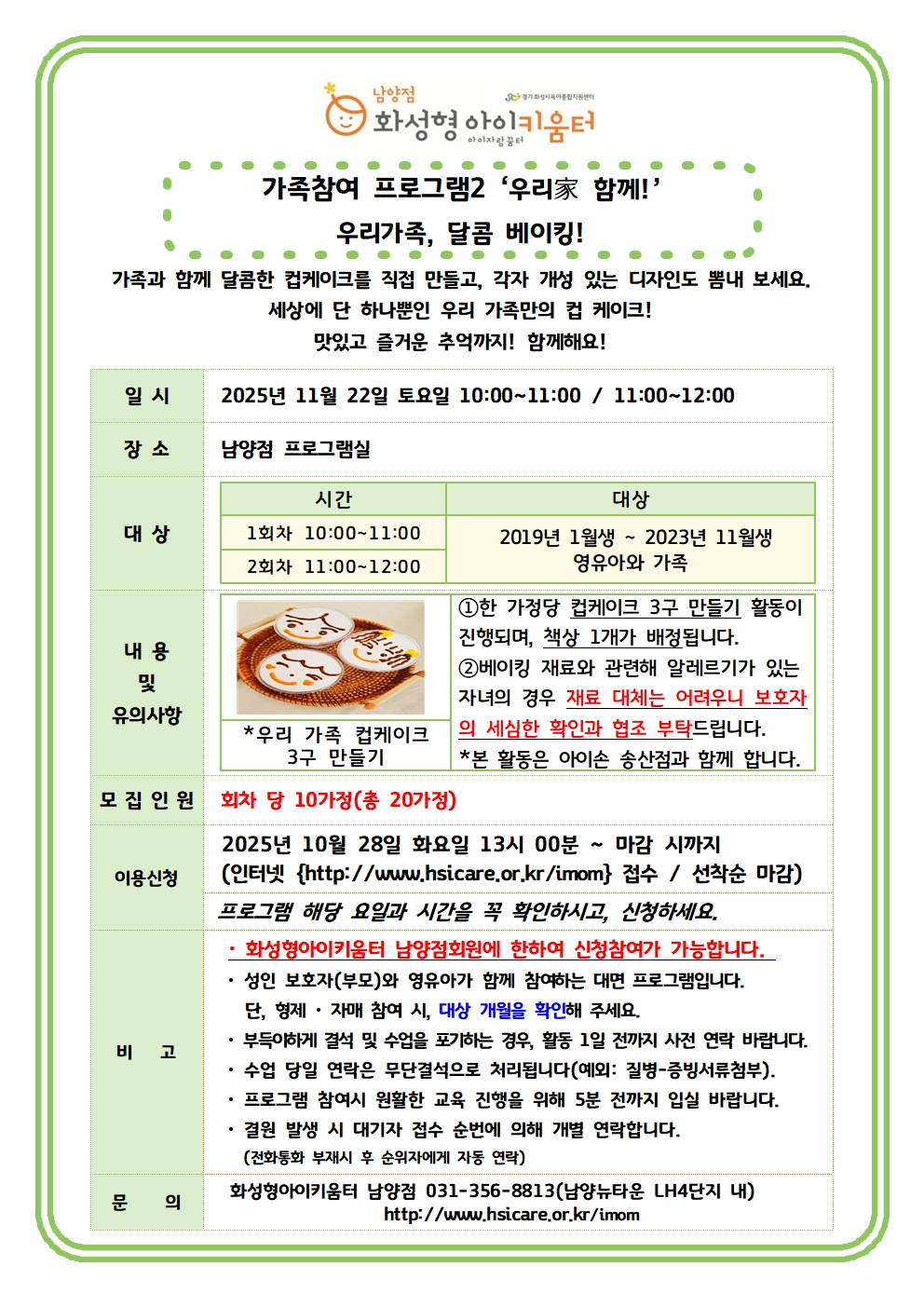 11월> 가족참여 '우리 家 함께!' - 우리가족, 달콤 베이킹! (22일, 토)