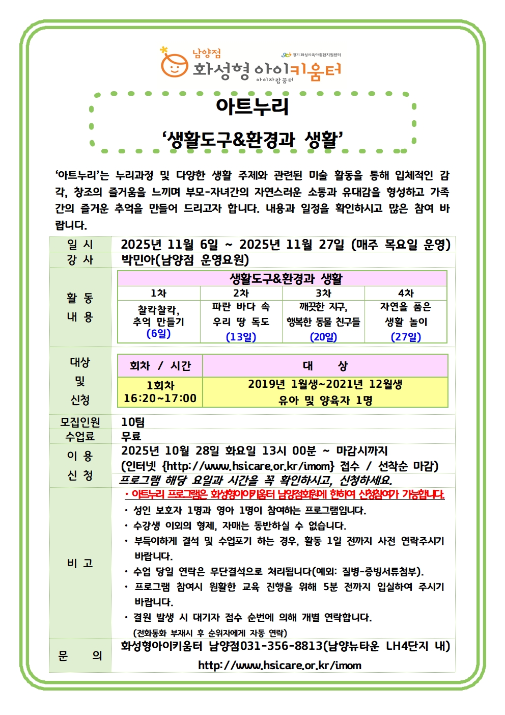 2019년 1월생 ~ 2021년 12월생 유아 및 양육자 1명 |