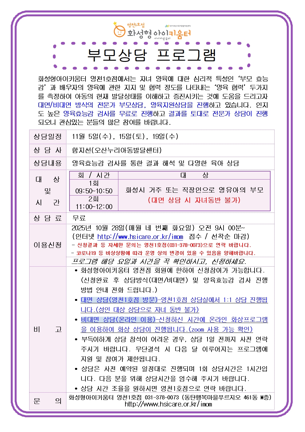 대상 육아고민 상담, 아동심리 상담, 양육지원상담