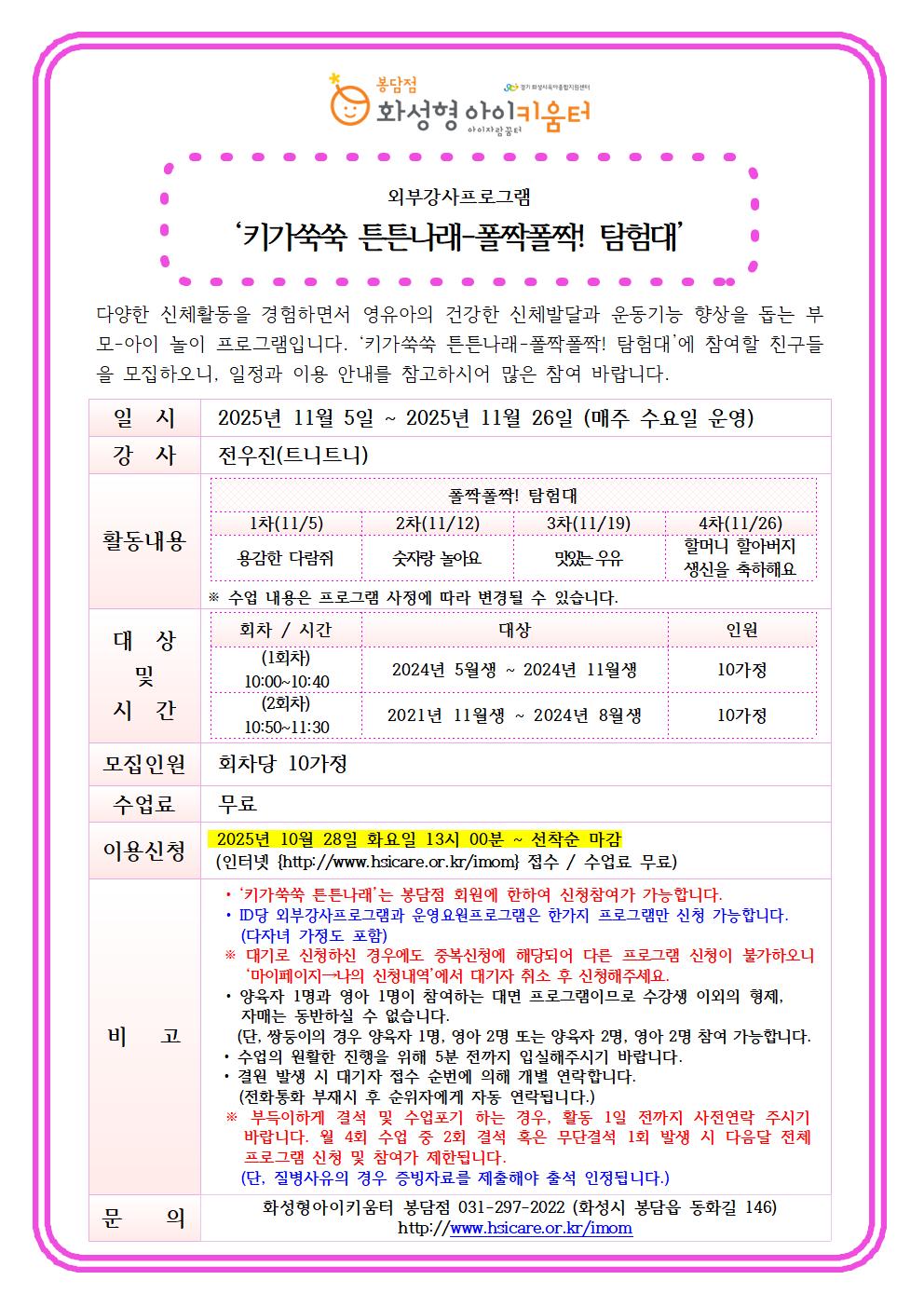 *? 화성형아이키움터 봉담점 프로그램은?부모인증 받은 봉담점 회원에 한하여 참여 가능합니다.