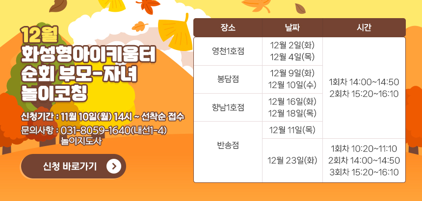 부모-자녀 놀이코칭(봉담점 11월 11일(화) 1회차 14:00~14:50)