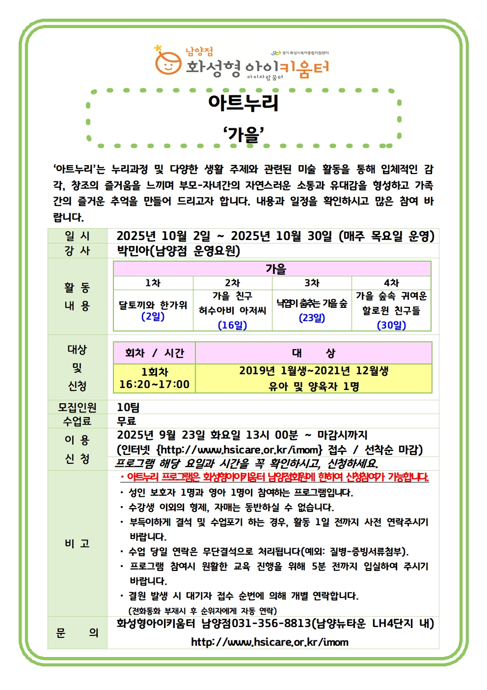 10월> 운영요원 프로그램' 아트누리' - 가을 (목)