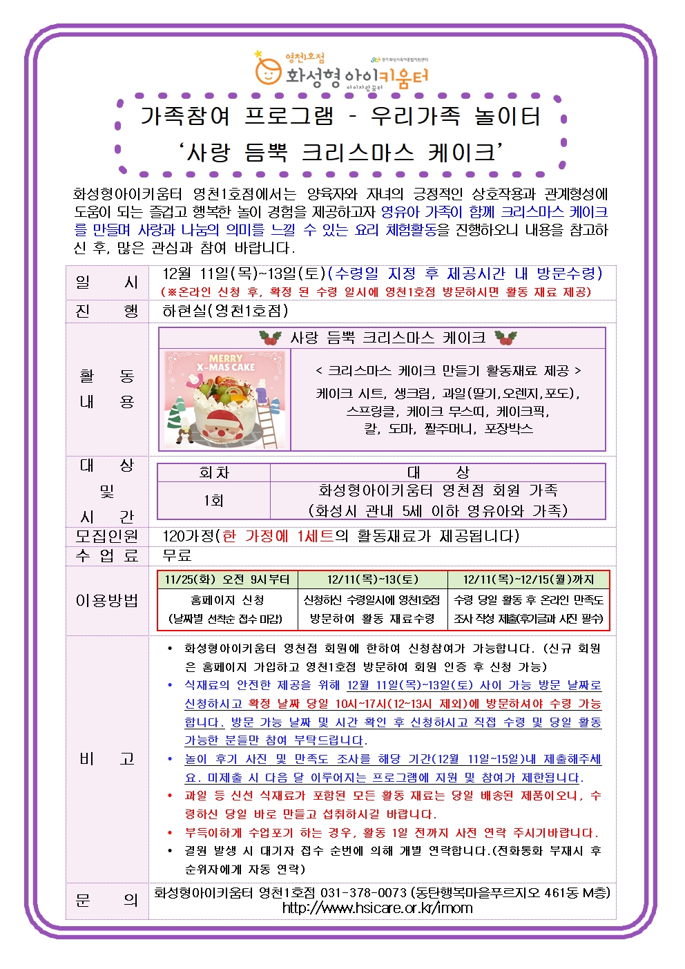 12월 12일(금)수령- 가족참여 프로그램 사랑 듬뿍 크리스마스 케이크(비대면)