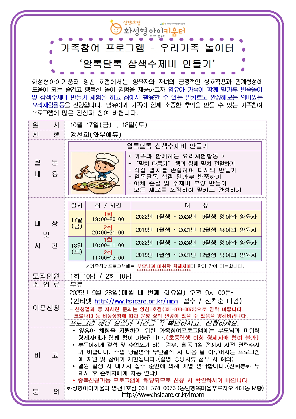 가족참여 프로그램-알록달록 삼색수제비 만들기(대면)